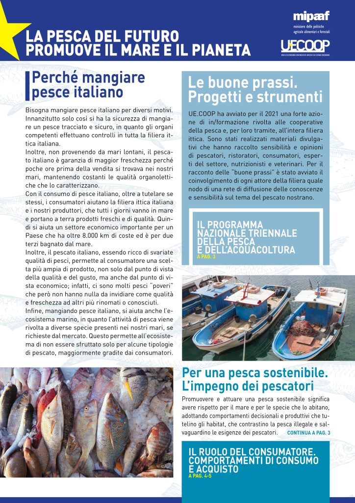 UE.COOP ha avviato per il 2021 una forte azione di in/formazione rivolta alle cooperative della pesca e, per loro tramite, all’intera filiera ittica. Sono stati realizzati materiali divulgativi che hanno raccolto sensibilità e opinioni di pescatori, ristoratori, consumatori, esperti del settore, nutrizionisti e veterinari. Per il racconto delle “buone prassi” è stato avviato il coinvolgimento di ogni attore della filiera quale nodo di una rete di diffusione delle conoscenze e sensibilità sul tema del pescato nostrano.