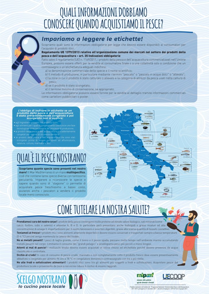 Il poster 50×70 contiene informazioni utili per imparare a leggere le etichette, riconoscere il pesce nostrano e tutelare la propria salute.