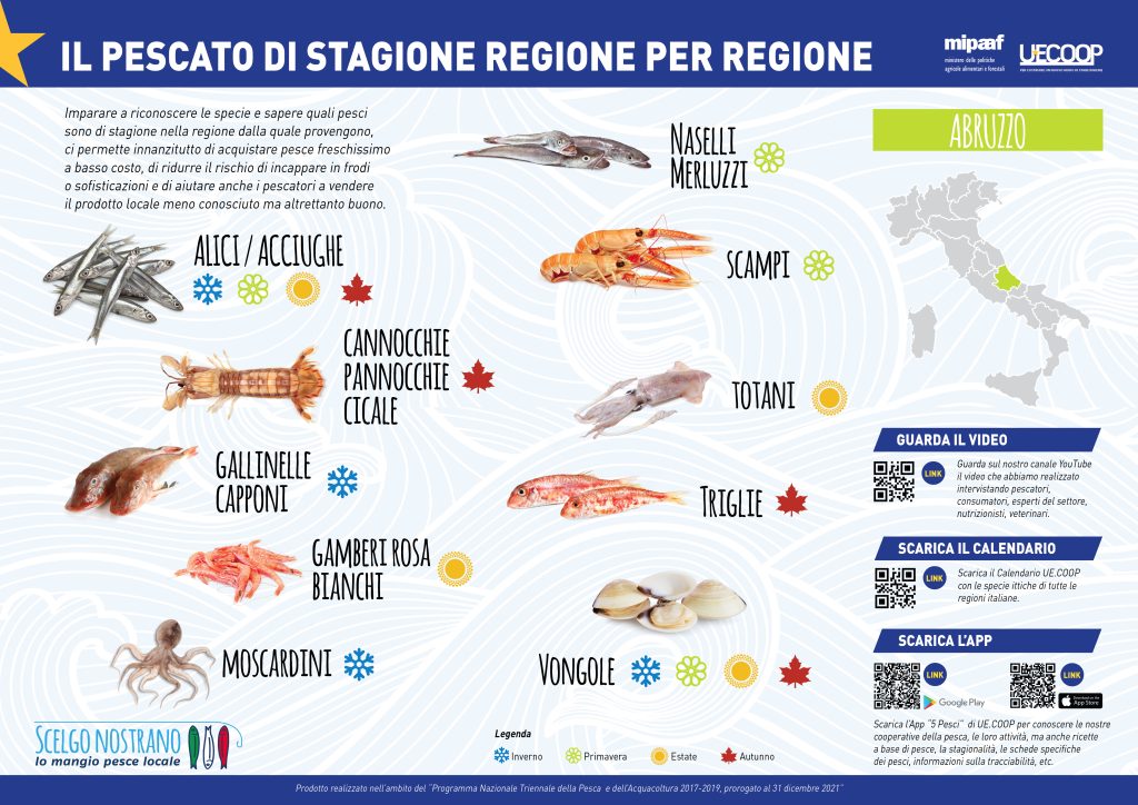Una guida alla stagionalità dei diversi tipi di pescato, regione per regione, pensato per agevolare la conoscenza, l’acquisto e il consumo anche delle specie mano note ma altrettanto valide dal punto di vista nutrizionale e della qualità, oltre che della convenienza economica.